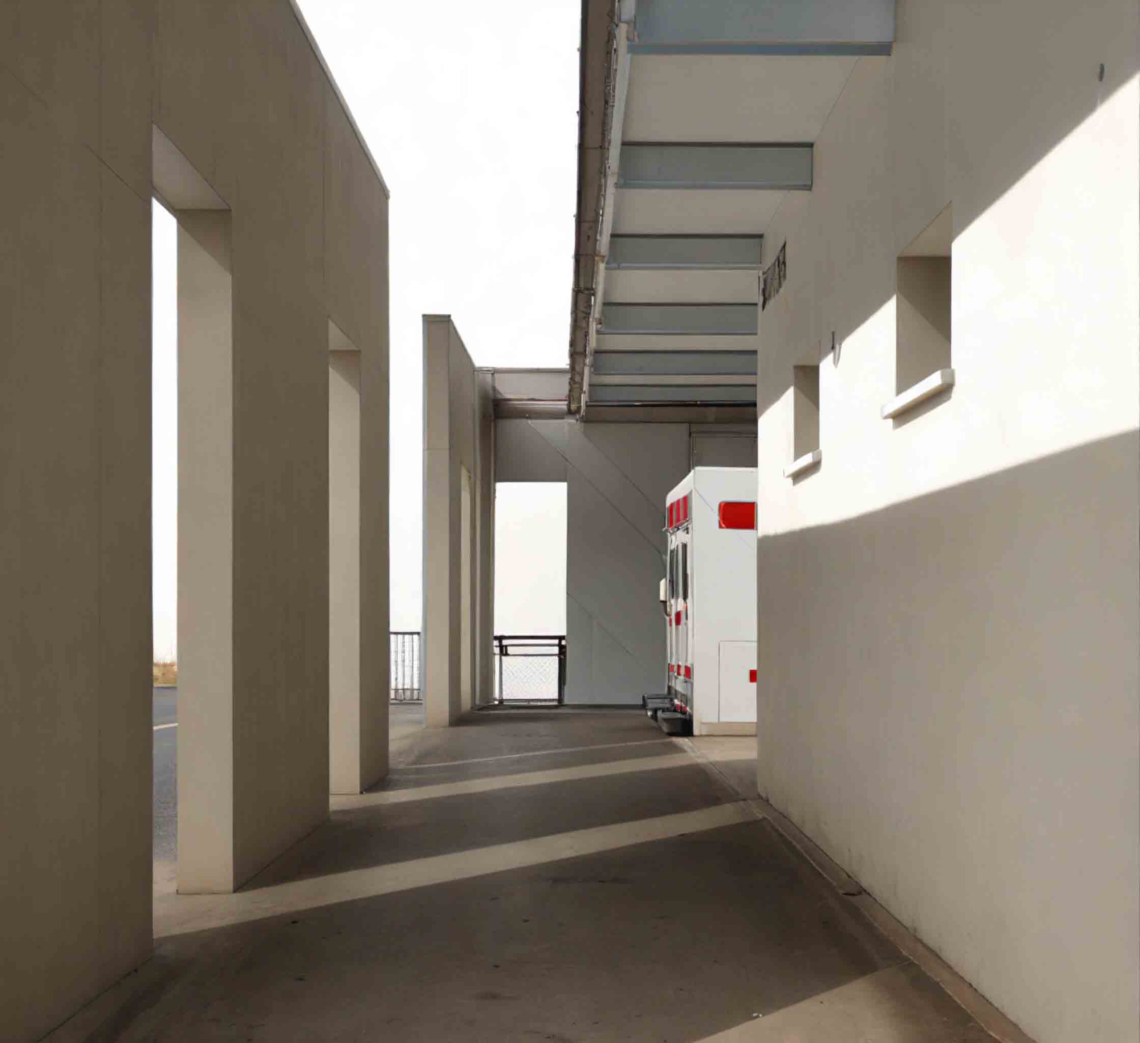Il carattere evocativo e fortemente plastico dell’architettura del Punto Salute di Centuripe emerge attraverso l’enfasi posta sul disegno di tali elementi: gli infissi a tutt’altezza vengono interrotti dalla linea orizzontale definita dalle cornici marcapiano, caratterizzate da una larghezza che denota la demarcazione tra i diversi piani.